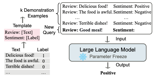 is given k demonstration examples written in a natural language template, followed by a new input,